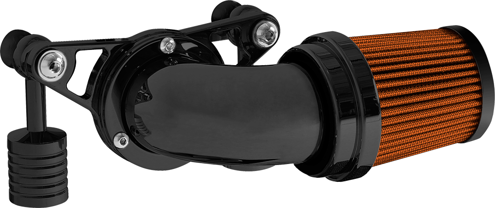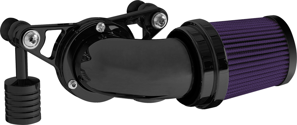 A popular choice for many riders. The swept forward design offers performance and style that lends this air cleaner to the top of our list. Attention to detail is abundant from the design to the manufacturing process. The deep pleated standard air filter with its cylinder style shape flows smoothly into the mandrel bent elbow providing a clean transition from air filter to elbow. The elbow is then bolted to our billet aluminum mounting kit for a complete air cleaner assembly that is proven to turn heads and provide greater air flow.