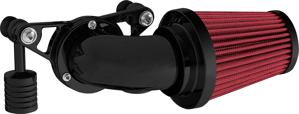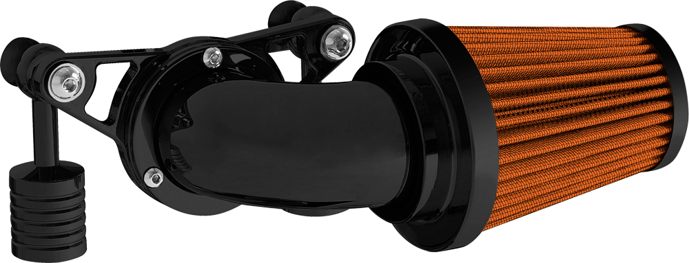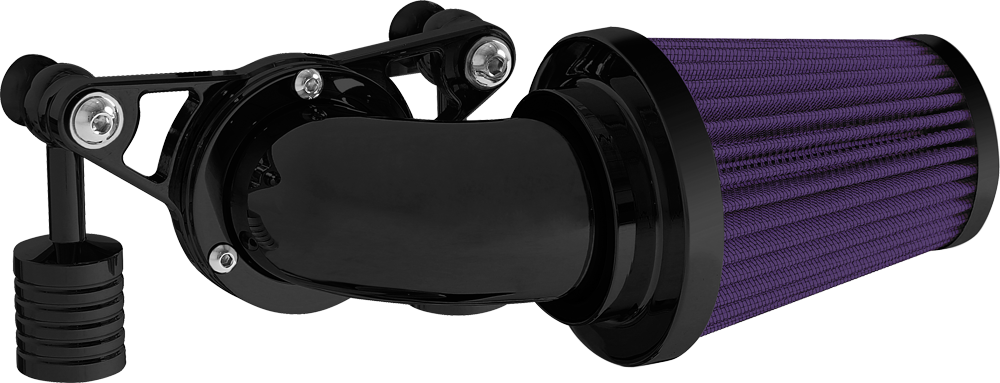 A popular choice for many riders. The swept forward design offers performance and style that lends this air cleaner to the top of our list. Attention to detail is abundant from the design to the manufacturing process. The deep pleated air filter is sized proportionately allowing for greater air flow while maintaining rider comfort. A mandrel bent elbow and billet aluminum mounting kit are the remaining components that complete this air cleaner assembly.