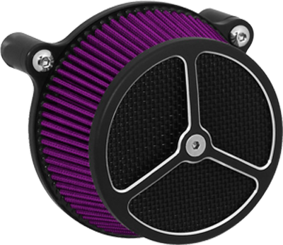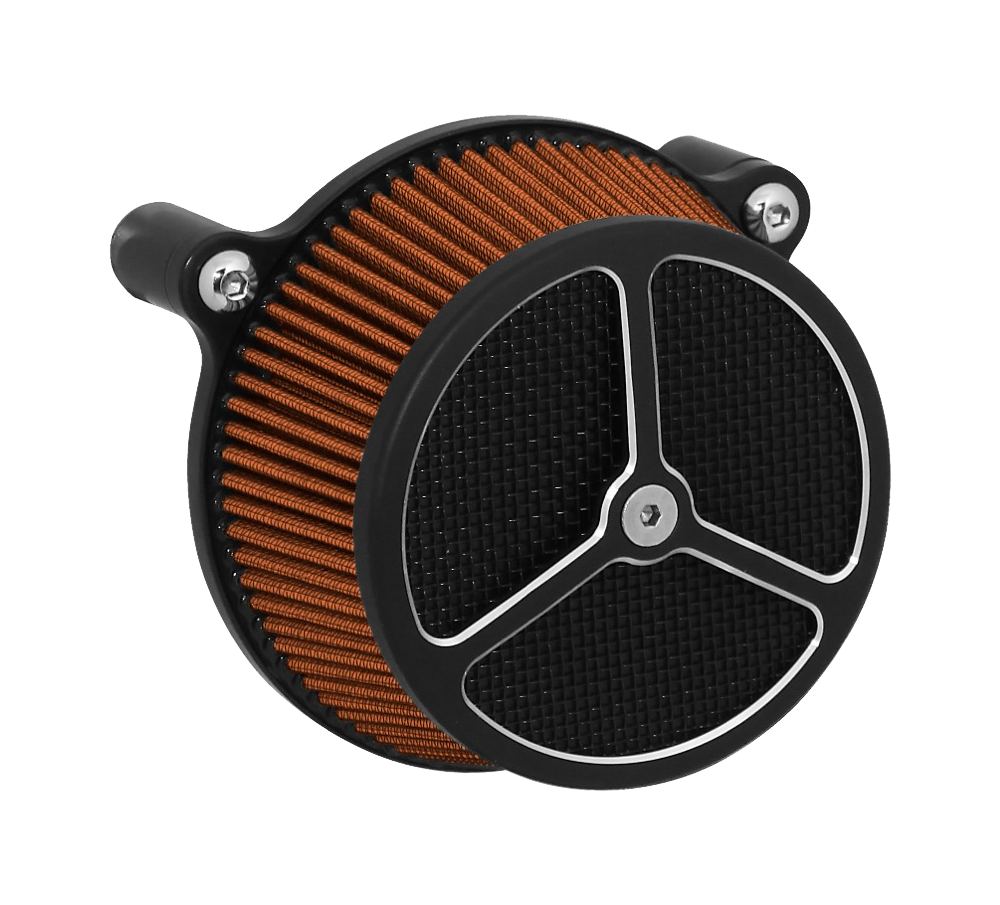 Performance and affordability are what make this a top selling air cleaner. Features include a billet aluminum back plate which provides better strength – eliminating broken, cast back plates that plague similar setups. Machined into each back plate sits a recessed pocket that encapsulates the performance air filter base, minimizing the unsightly look of the air filter base. The performance filter measures 2.75” deep, providing ample clean air to the oversized radius inlet. Head breathing is provided thru an internal passage in the back plate – providing a clean and practical solution. At the front of the air cleaner is the exclusive Wimmer Custom Cycle Air Star cover. Finely crafted and machined from a solid block of billet aluminum is your choice of a 3 or 5 spoke pattern. Beneath the billet cover lays the dutch woven stainless steel screen and plastic insert. Better Sucker with Air Star Cover kits are available in black powder coat, re-machined black, or show chrome. Five filter colors, stainless steel dutch woven screen, or black powder coat screen finish off the options.