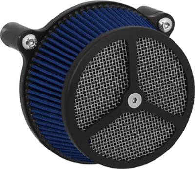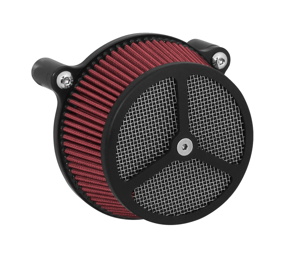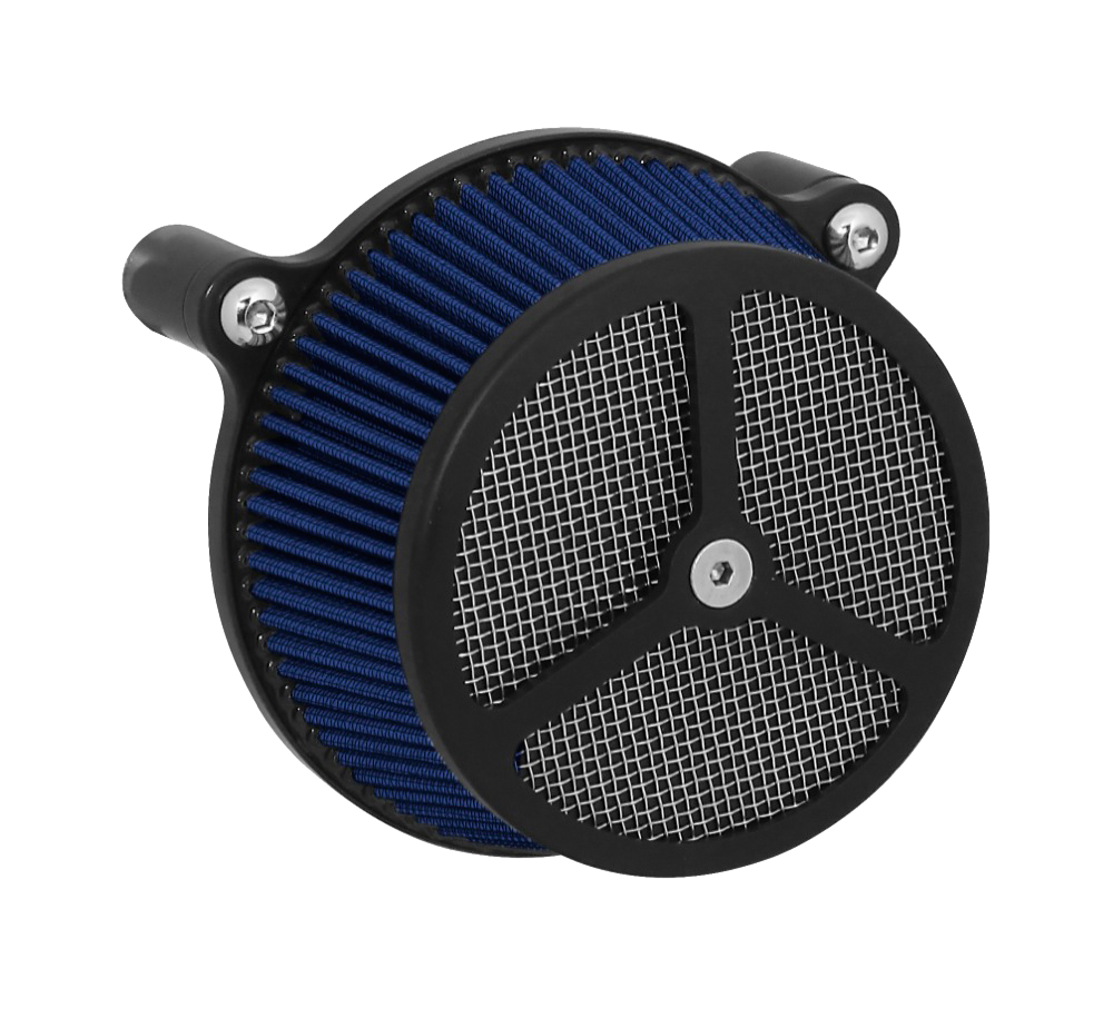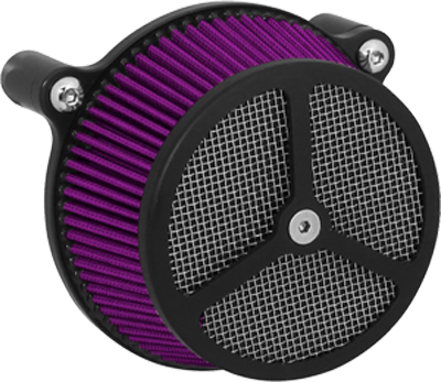 Performance and affordability are what make this a top selling air cleaner. Features include a billet aluminum back plate which provides better strength – eliminating broken, cast back plates that plague similar setups. Machined into each back plate sits a recessed pocket that encapsulates the performance air filter base, minimizing the unsightly look of the air filter base. The performance filter measures 2.75” deep, providing ample clean air to the oversized radius inlet. Head breathing is provided thru an internal passage in the back plate – providing a clean and practical solution. At the front of the air cleaner is the exclusive Wimmer Custom Cycle Air Star cover. Finely crafted and machined from a solid block of billet aluminum is your choice of a 3 or 5 spoke pattern. Beneath the billet cover lays the dutch woven stainless steel screen and plastic insert. Better Sucker with Air Star Cover kits are available in black powder coat, re-machined black, or show chrome. Five filter colors, stainless steel dutch woven screen, or black powder coat screen finish off the options.